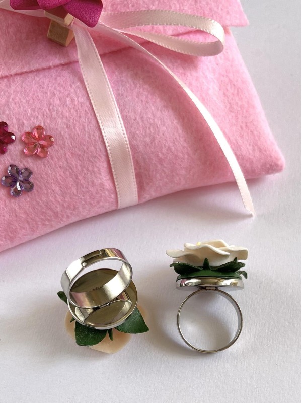 Ogni fiore è realizzato in pasta polimerica ed è creato a mano, petalo per petalo, così come le foglie sono modellate una ad una. Ogni singola miniatura viene poi assemblata per dare vita a ciondoli esclusivi da cui nascono i gioielli Fior di Luna.