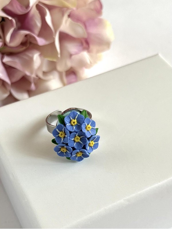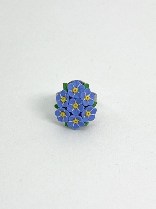 La base dell’anello con i fiori misura 2x1,3 cm ed è regolabile
