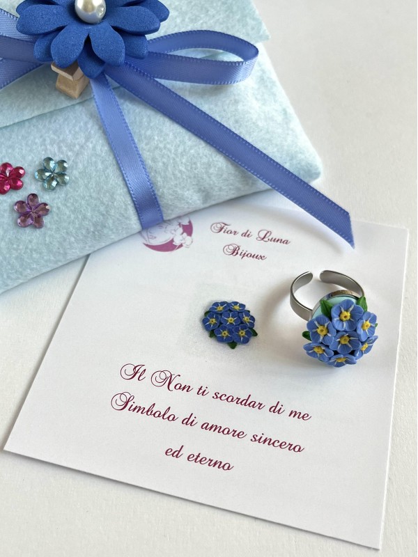 Si ispira al non ti scordar di me che, secondo il linguaggio dei fiori, simboleggia l’amore sincero ed eterno.