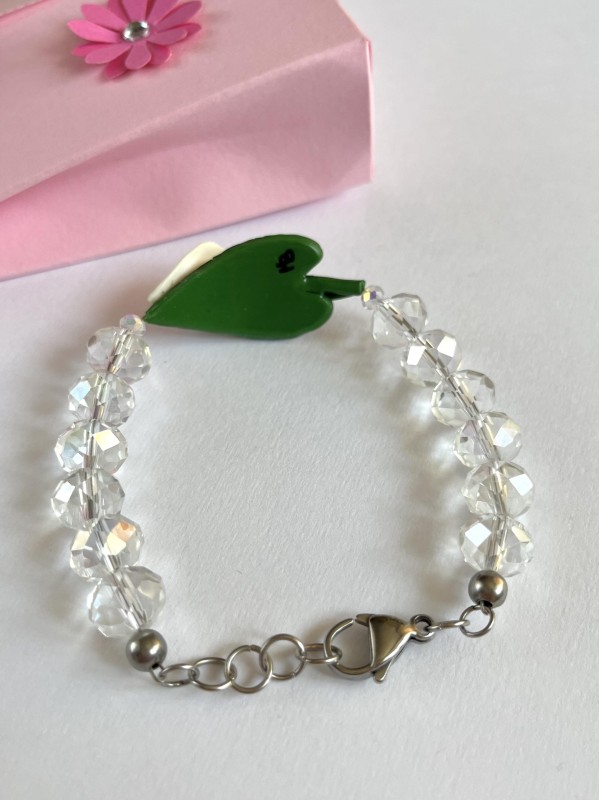 Il bracciale è lungo 17,5 cm regolabile a 19,5 cm, il ciondolo misura 3,5x2 cm