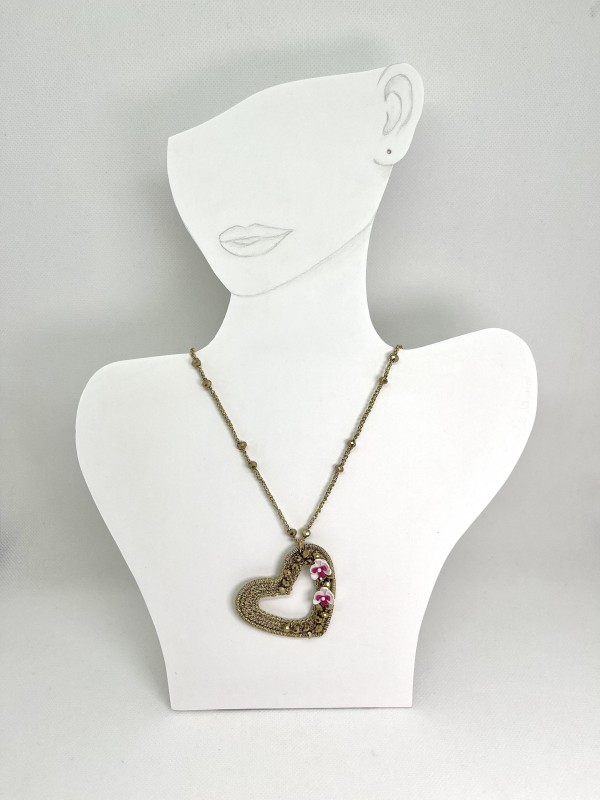 La collana è lunga circa 70 cm e il ciondolo misura circa 5x4,5 cm