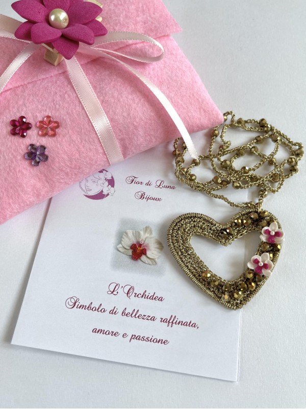 Questa collana fa parte della Collezione Orchidea ed è stata creata in occasione della Festa della Mamma, ma è perfetta per qualsiasi momento.