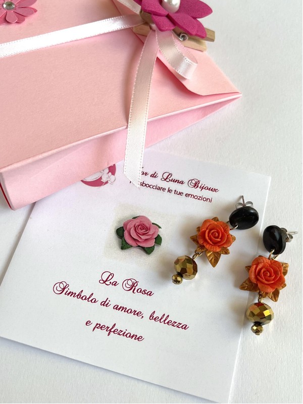 Ogni fiore è realizzato in pasta polimerica ed è creato a mano, petalo per petalo, così come le foglie sono modellate una ad una. Ogni singola miniatura viene poi assemblata per dare vita a ciondoli esclusivi da cui nascono i gioielli Fior di Luna.