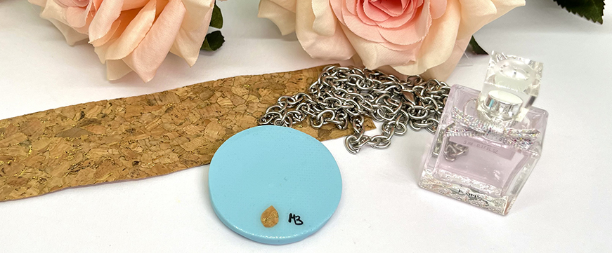 Alcuni miei gioielli floreali hanno la caratteristica di avere una piccola decorazione di un sottile strato di sughero con pagliuzze dorate nel retro del ciondolo, per poter mettere, se ti fa piacere,...